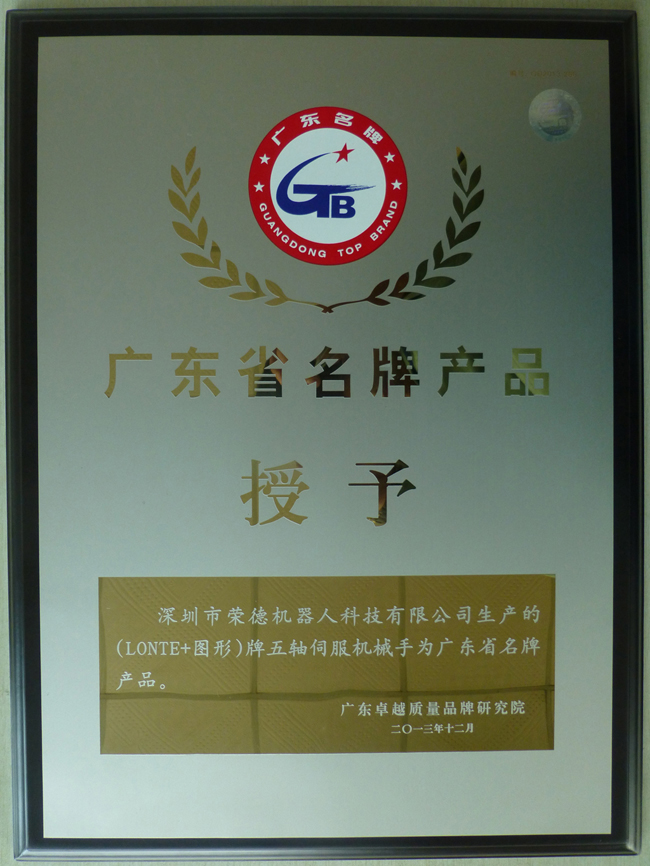 廣東省名牌產(chǎn)品申報可以說是相當嚴格,體現(xiàn)了該榮譽的嚴肅性、公正性。這也充分證明了深圳市榮德機器人科技有限公司的綜合實力以及客戶對榮德公司的滿意程度。