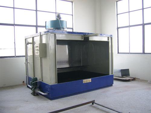 干式噴漆室有室體、排風(fēng)裝置和漆霧鋪集裝置等組成。室體一般是用鋼結(jié)構(gòu)支架,鋼壁板和玻璃墻板組合制成。小型的干式噴漆室可將小型排風(fēng)機直接放置在噴漆室頂部。大中型的應(yīng)將排風(fēng)機放置在室外,或室內(nèi)平臺上。漆霧處理裝置通過減慢流速和增加漆霧與折流板或過濾材料的接觸機會來捕集漆霧。