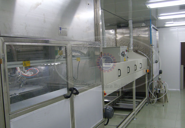 噴漆烘干流水線技術(shù)優(yōu)勢:該裝置反射鏡采用聚光型冷鏡,燈下加裝石英玻璃板,可有效降低被照物表面溫度;變頻無級調(diào)速,保證傳送平穩(wěn);觸摸屏微電腦自動控制,實現(xiàn)人機(jī)對話;每套UV系統(tǒng)獨立控制,依生產(chǎn)開啟燈管數(shù)量;每支燈設(shè)累計工作計時器,方便掌握燈管工作時間和老化程度;透明視窗,工作時可以觀察固化燈工作情況,并設(shè)開門保護(hù)裝置;燈管及燈罩可以上下調(diào)整。
